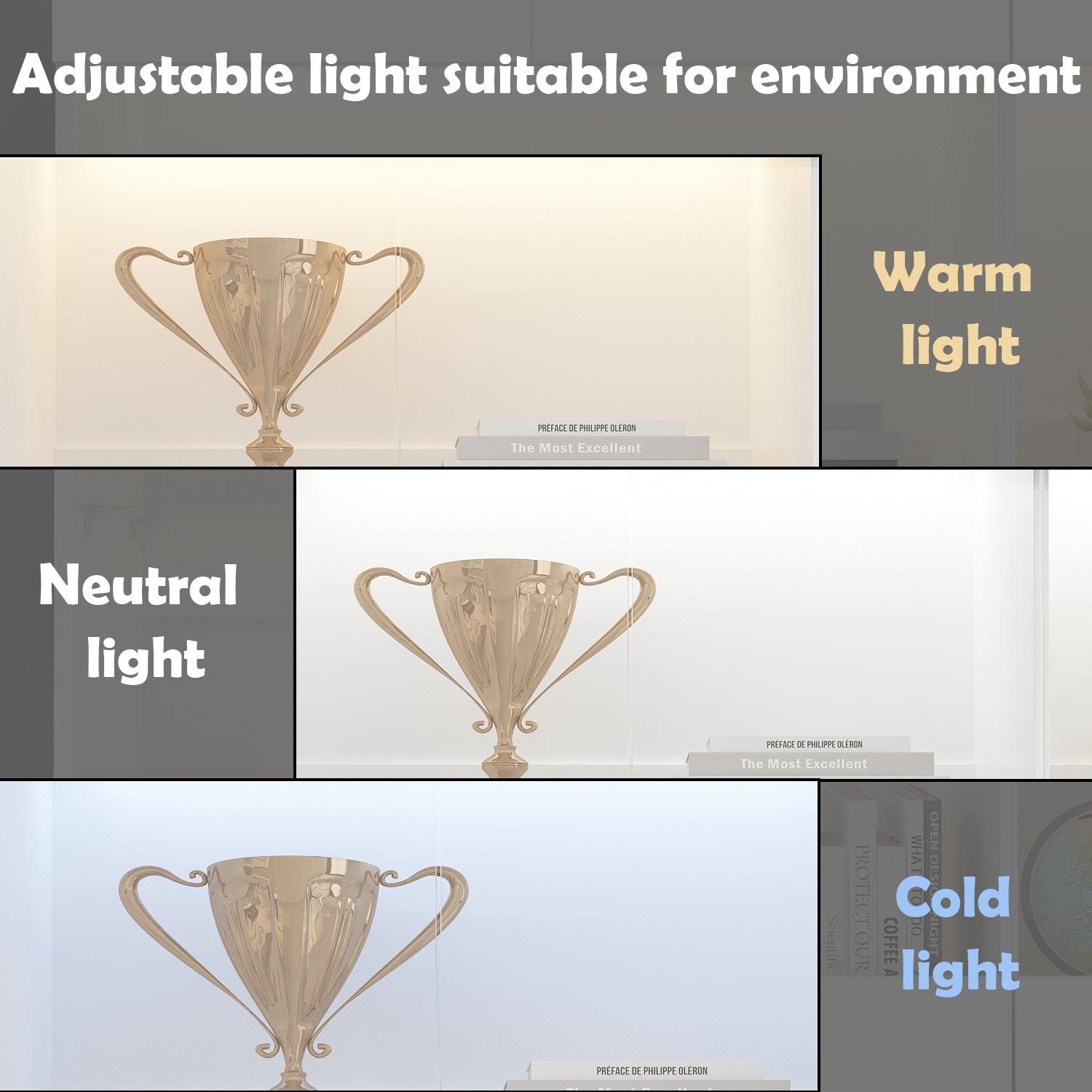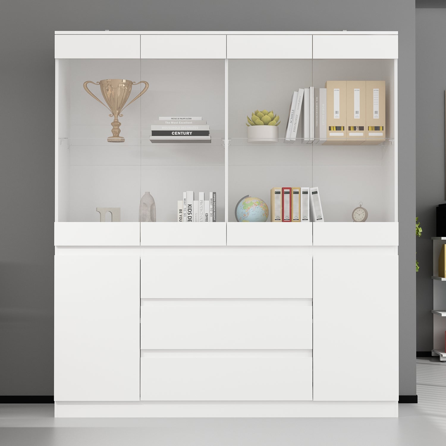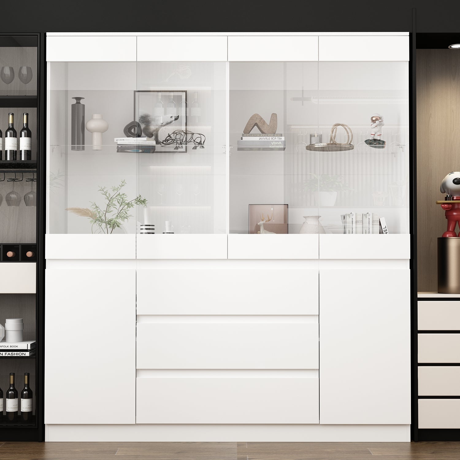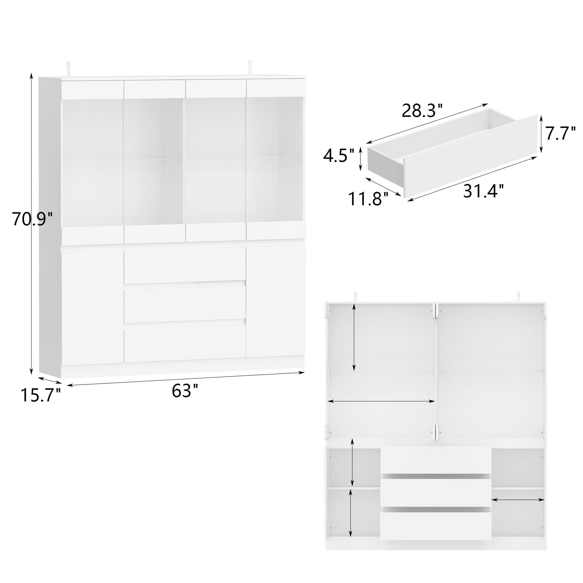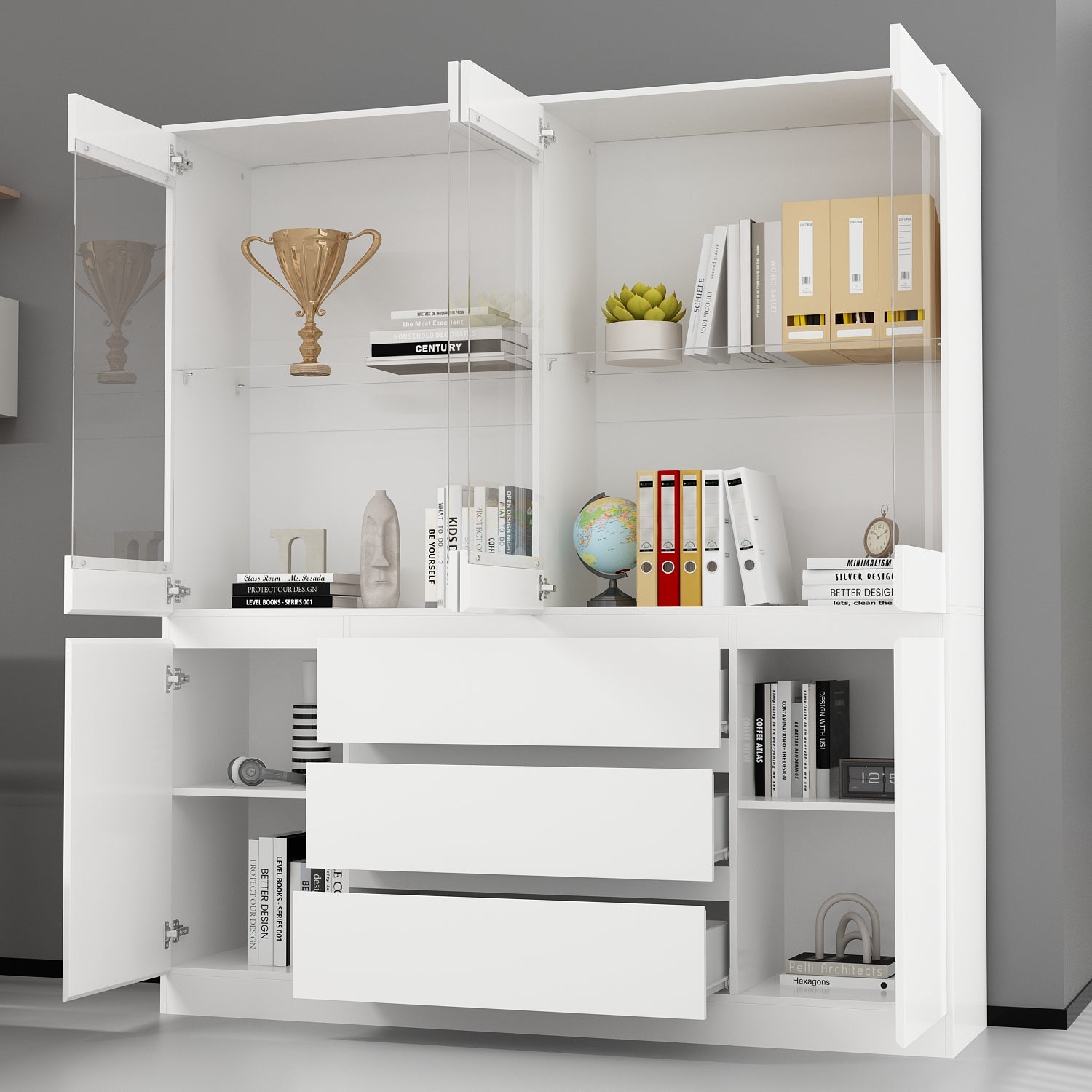 This is a high-end display cabinet that will surprise you! It is the best choice to place this cabinet in your living room, bedroom, kitchen, or dining room. The upper half of it is a cabinet made of tempered glass and has built-in light strips that can emit three different colors of light. The lower part consists of two cabinets and three drawers, meeting your storage needs for private items and hiding all the clutter in your daily life.