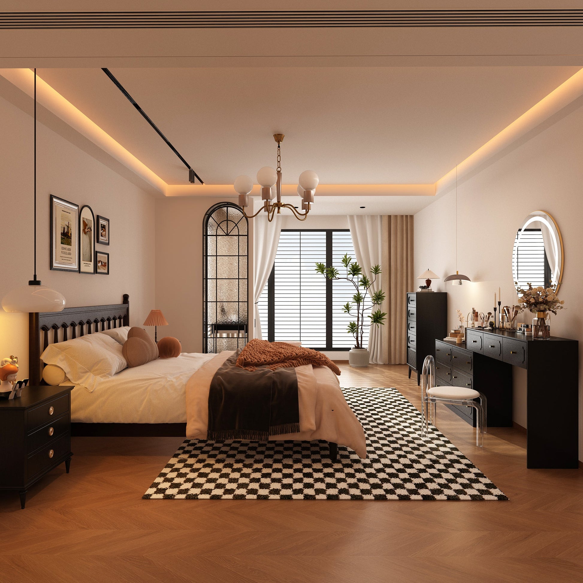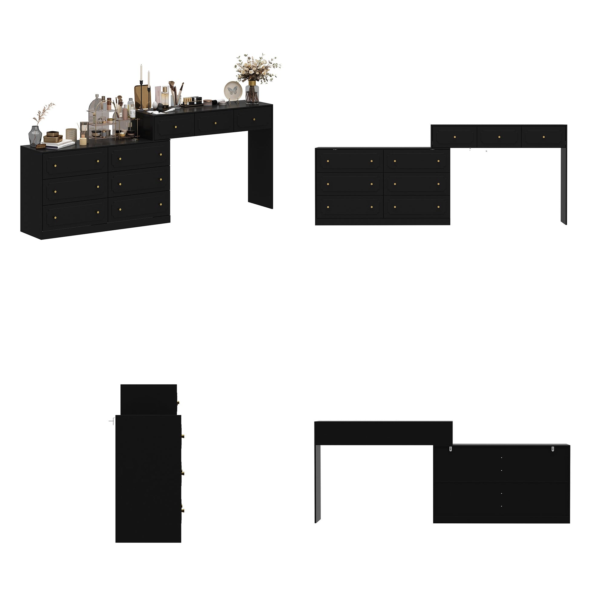 You will definitely be amazed by our 9-drawer cabinet, which can be used as both a drawer cabinet and a dressing table or desk. The exquisite gold round handle paired with a black finish makes the cabinet even more noble. The 3 drawers at the top and the six drawer cabinets below are not fixed, and you can freely adjust the angle and position between them according to your needs.