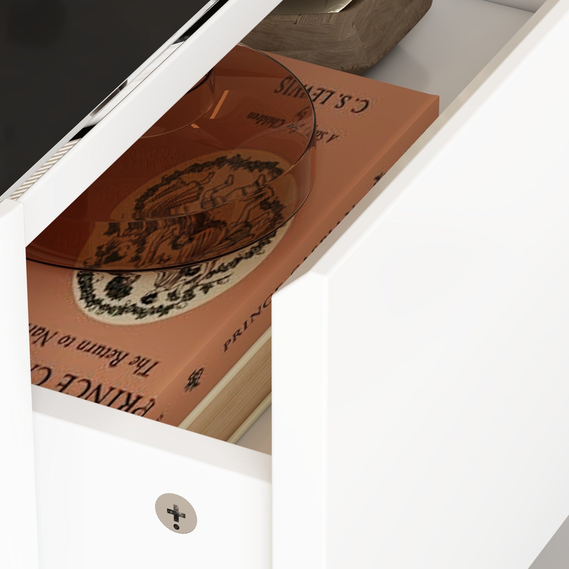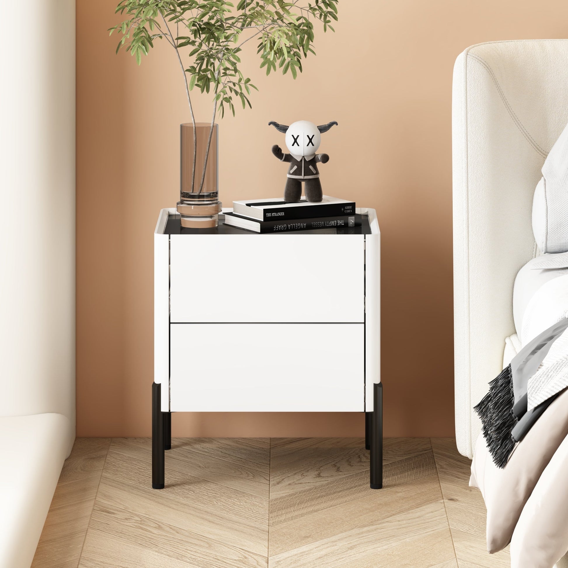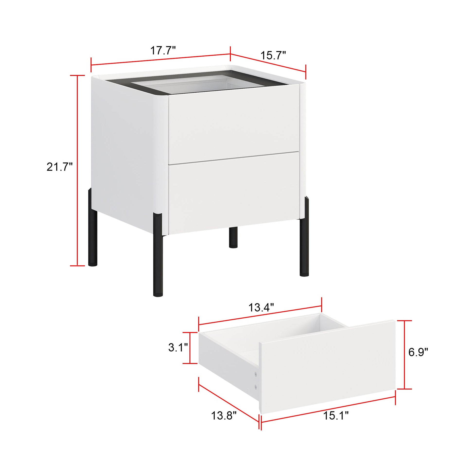 Add modern style and practicality to your bedroom with this nightstand from us. Its minimalist design combines with high-quality materials to create a durable and sophisticated piece of furniture. Crafted from high-quality wood, it ensures solid construction and longevity. The top is covered with sturdy tempered glass, which not only protects the countertop from scratches and wear and tear, but also enables you to admire the interior furnishings at a glance.